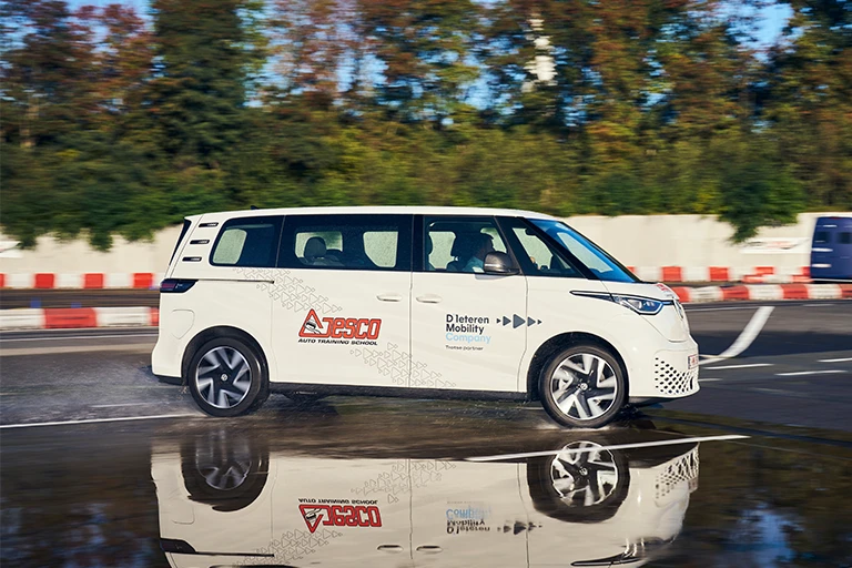 Het Jesco-oefenterrein werd speciaal ontworpen om in veilige omstandigheden de rijvaardigheid te verbeteren. Op de agenda staan ontwijkingsoefeningen met slipcontrole, noodstopremtechniek, remmen en ontwijken, preventieve remtechniek en aquaplaning!